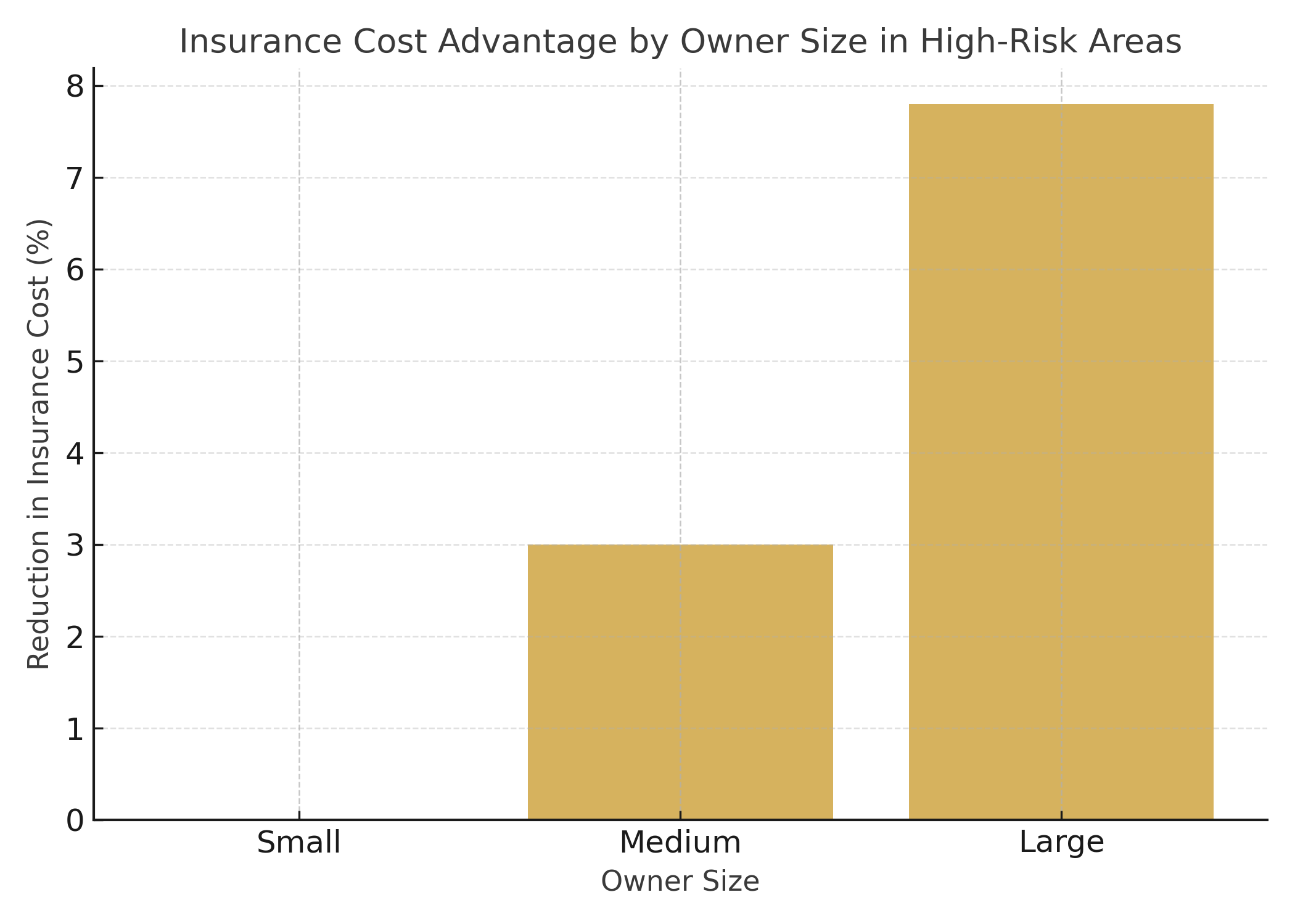 Large property owners in high-risk areas enjoy up to 7.8% lower insurance costs.