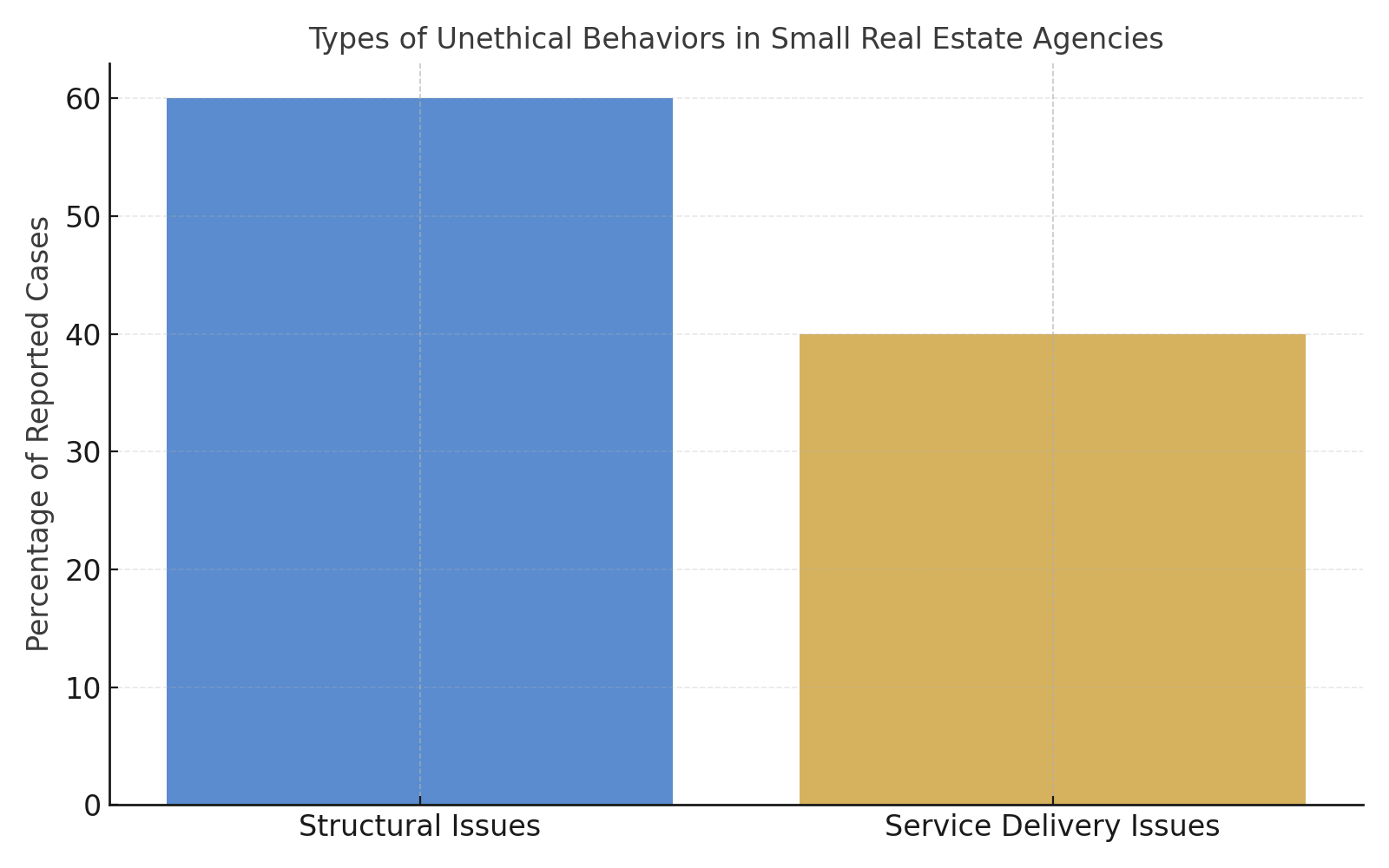 Structural issues account for most unethical practices, while service-related misconduct remains significant.